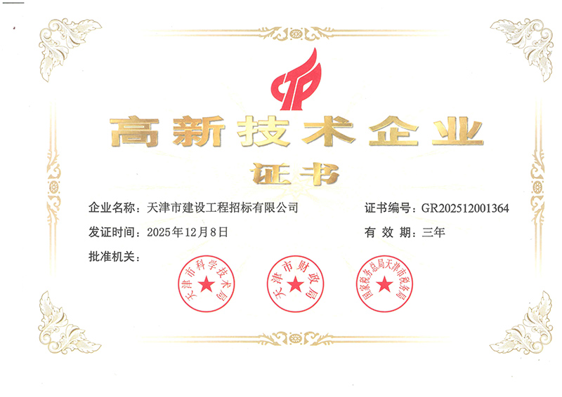 近日,經天津市科學技術局、財政局、稅務局聯合評審,天津咨詢所屬天津市建設工程招標有限公司成功通過高新技術企業認證,正式躋身國家高新技術企業行列。此前,天津咨詢所屬另外一家“高新技術企業”天津市泛亞工程咨詢有限公司,也于2025年12月順利通過復審。